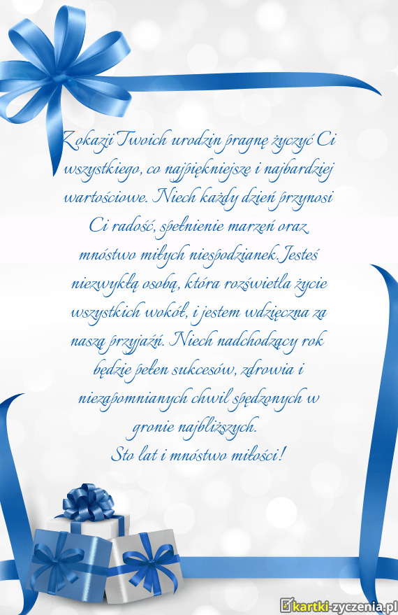 życzenia urodzinowe to te składane osobiście i szczerze – posiadają najsilniejszą moc i z pewnością najdłużej zapadają w pamięć, gdy składane są na żywo. Nie zawsze jednak możliwe jest osobiste spotkanie z solenizantem – czasami trzeba posłużyć się elektroniką. Ma to swoją zaletę – życzenia nie ulatują w przestrzeń, lecz pozostają: w formie SMS-owej, czy przesłane drogą e-mailową. W tej drugiej wersji są może nawet ciekawsze – od dawna już bowiem przybierają kolorową, wesołą formę, dzięki czemu życzenia nie tylko posiadają ujmujące słowa, ale są także atrakcyjne wizualnie!