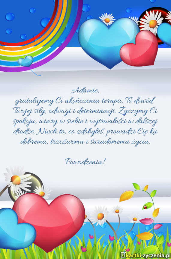 Gratulujemy Ci ukończenia terapii. To dowód Twojej siły, odwagi i determinacji. Życzymy Ci spoko