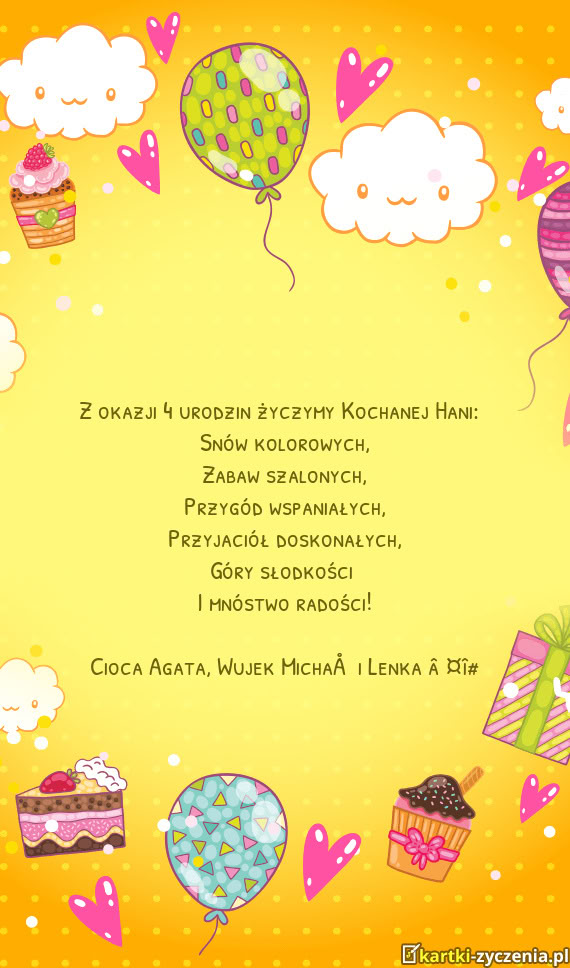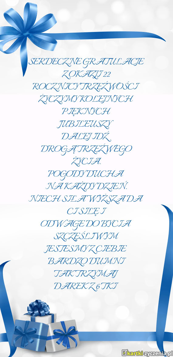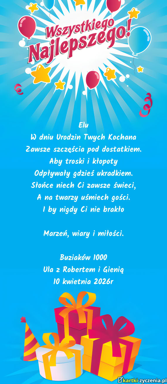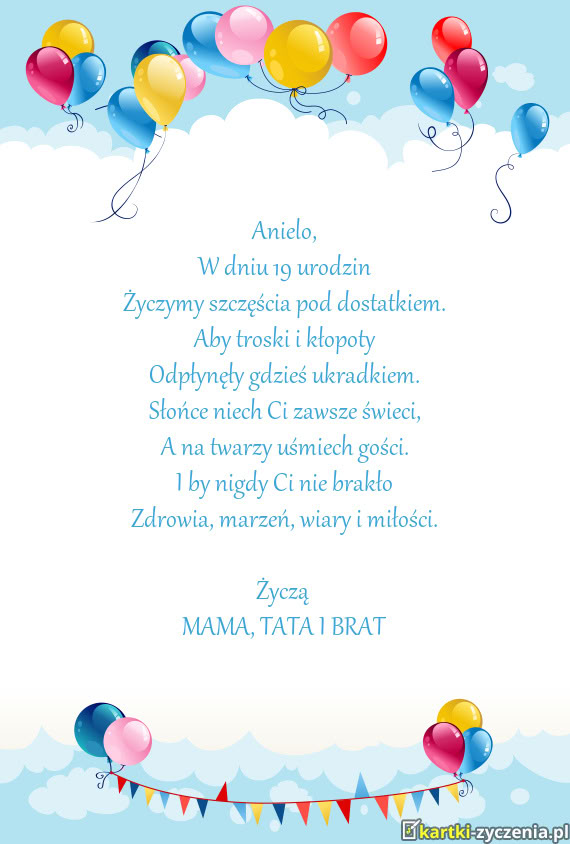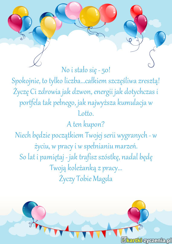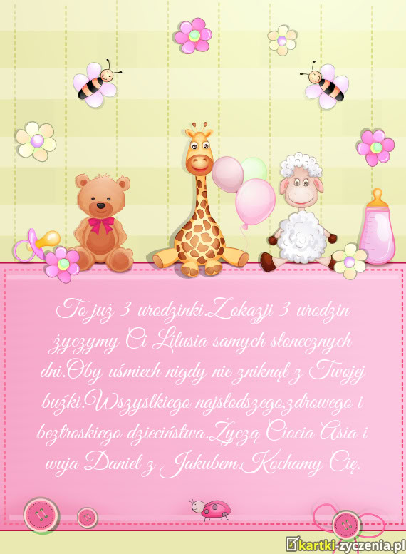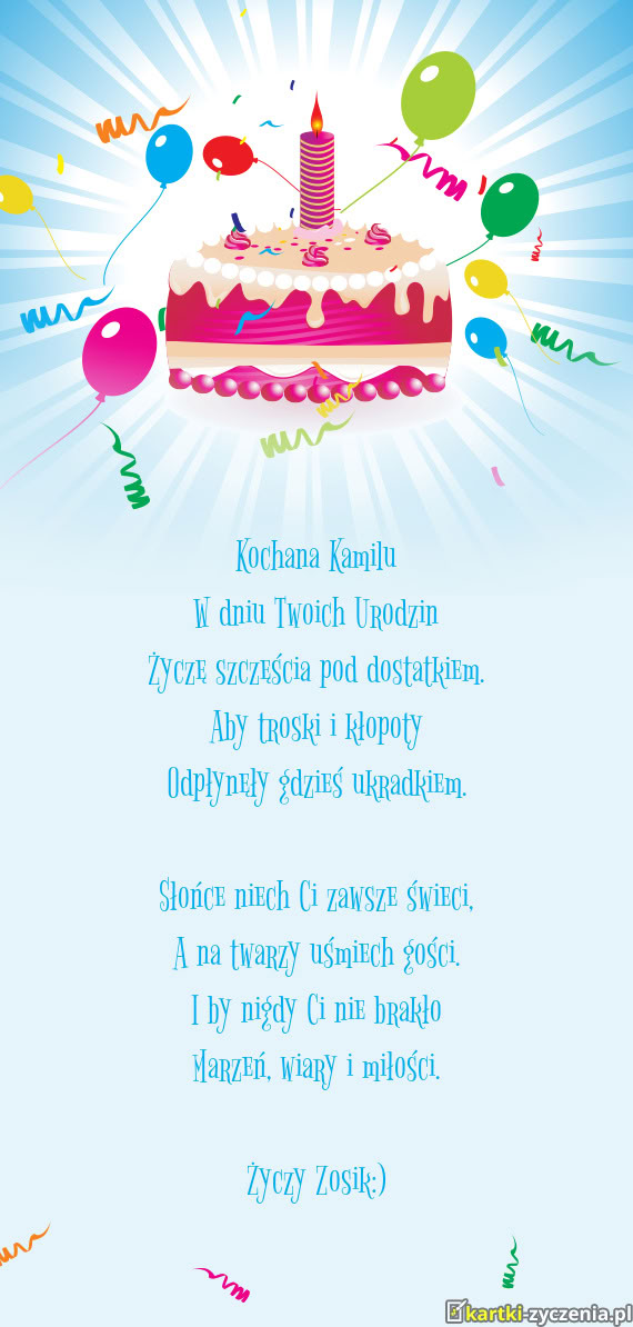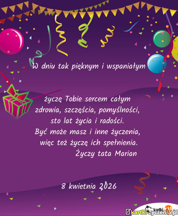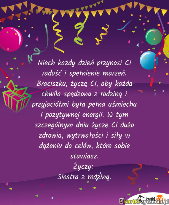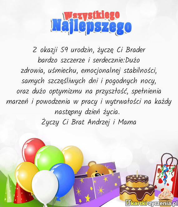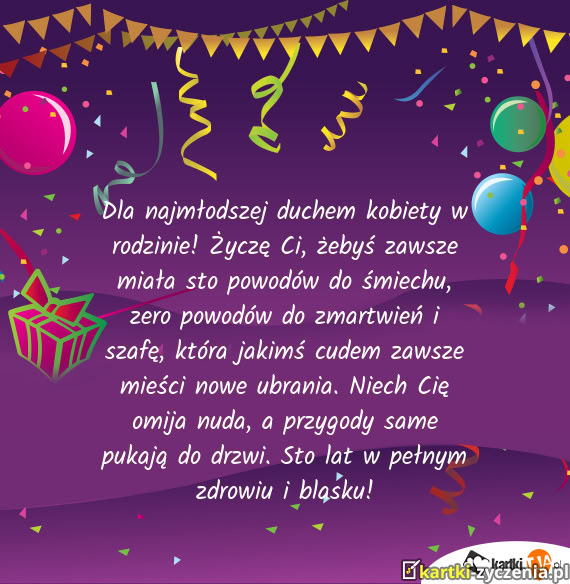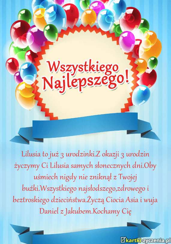 kartki na urodziny dla tego samego człowieka, nieprędko się powtórzy. Radosne szablony z tortem, prezentami czy balonami nastroją solenizanta pozytywnie na jego wielki dzień – będą wspaniałą pamiątką, której otwarcie wywoła na jego twarzy szeroki uśmiech. Portal jest bazą gotowych życzeń, które można przesłać przez SMS, za pomocą portalu społecznościowego Facebook, bądź też skopiować do jednego z szablonów, przy okazji sprawdzając, jak dane słowa wyglądałyby z resztą dekoracji. Wybieramy tylko to, co nam się podoba!