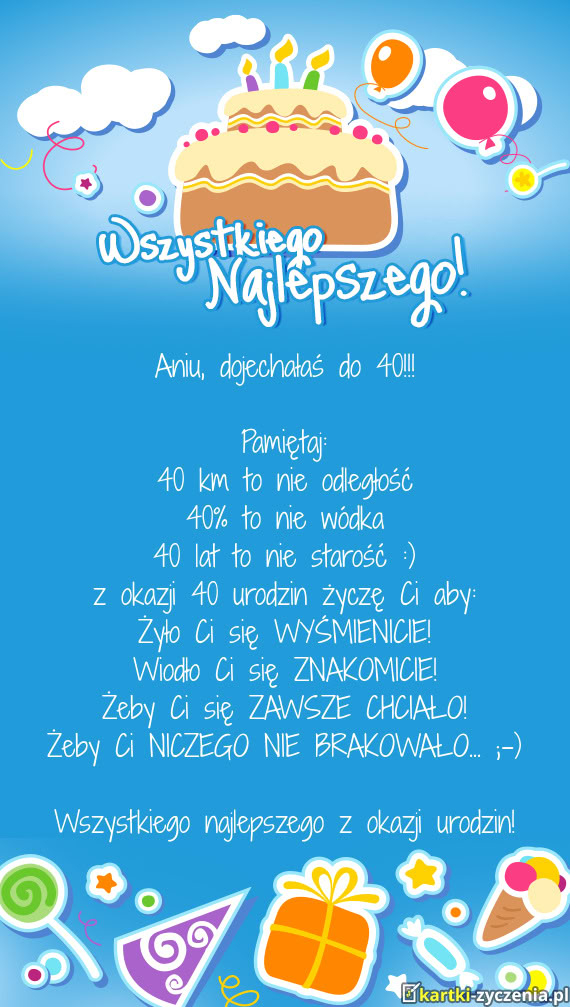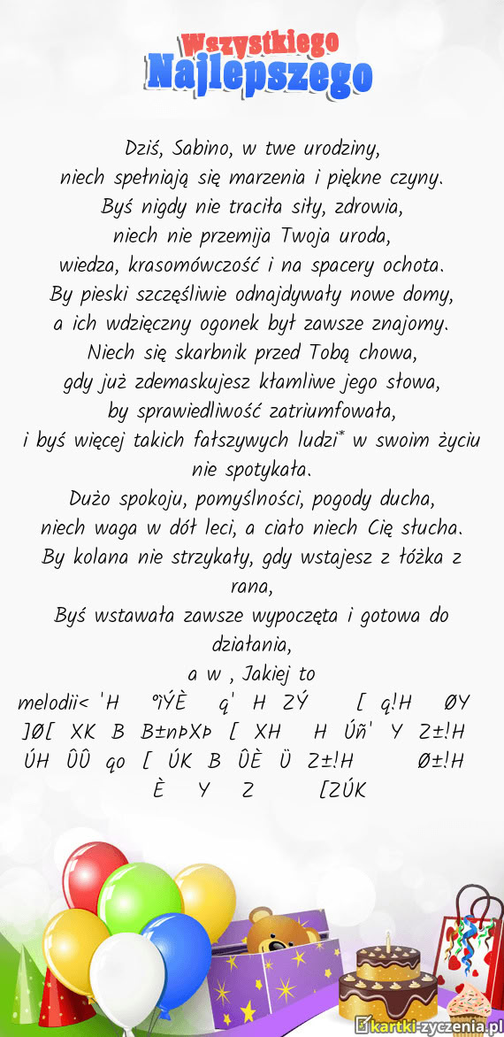 życzenia urodzinowe to te składane osobiście i szczerze – posiadają najsilniejszą moc i z pewnością najdłużej zapadają w pamięć, gdy składane są na żywo. Nie zawsze jednak możliwe jest osobiste spotkanie z solenizantem – czasami trzeba posłużyć się elektroniką. Ma to swoją zaletę – życzenia nie ulatują w przestrzeń, lecz pozostają: w formie SMS-owej, czy przesłane drogą e-mailową. W tej drugiej wersji są może nawet ciekawsze – od dawna już bowiem przybierają kolorową, wesołą formę, dzięki czemu życzenia nie tylko posiadają ujmujące słowa, ale są także atrakcyjne wizualnie!