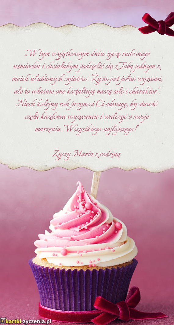 „W tym wyjątkowym dniu życzę radosnego uśmiechu i chciałabym podzielić się z Tobą jednym z