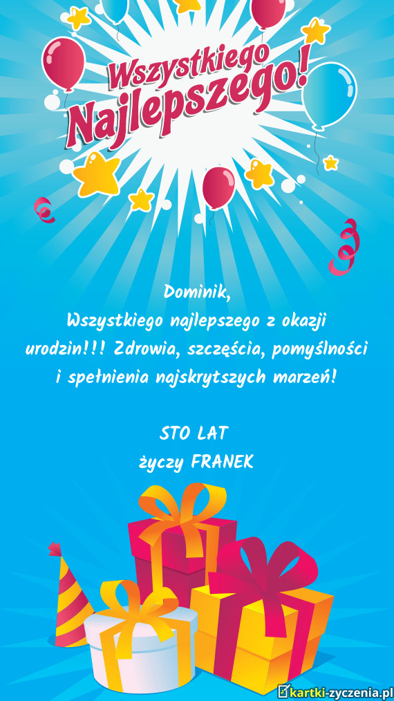 Pomyślności i spełnienia najskrytszych marzeń! STO LAT życzy FRANEK