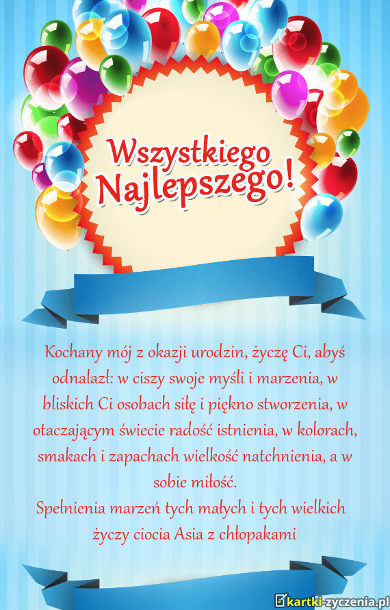 Kochany mój z okazji urodzin, życzę Ci, abyś odnalazł: w ciszy swoje myśli i marzenia, w blisk