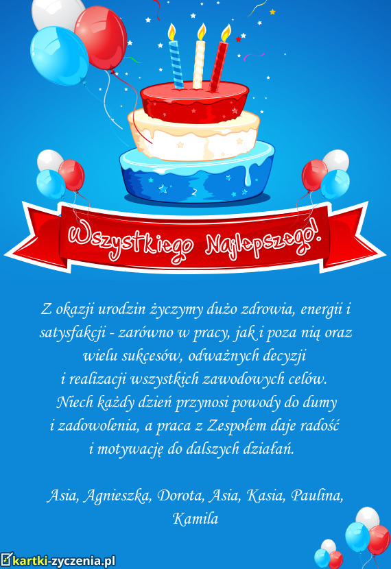 Z okazji urodzin życzymy dużo zdrowia, energii i satysfakcji - zarówno w pracy, jak i poza nią oraz wielu sukcesów, odważnych decyzji