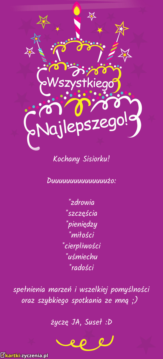 Życzymy zdrówka i kasy wianek no i pełno niespodzianek.