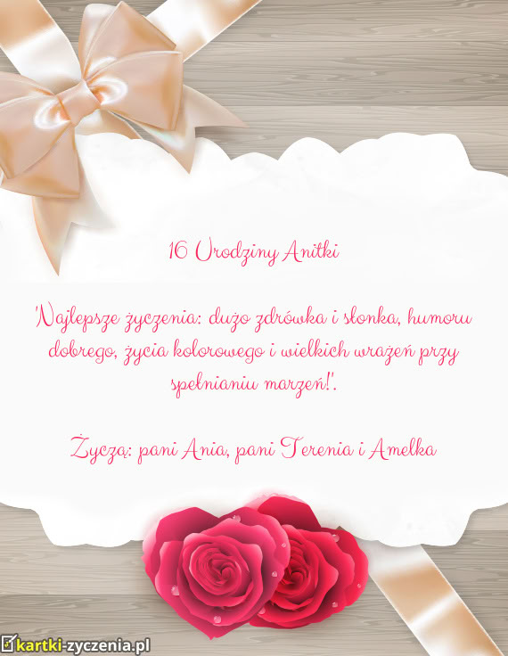 "Najlepsze życzenia: dużo zdrówka i słonka, humoru dobrego, życia kolorowego i wielkich wrażeń przy spełnianiu marzeń!".