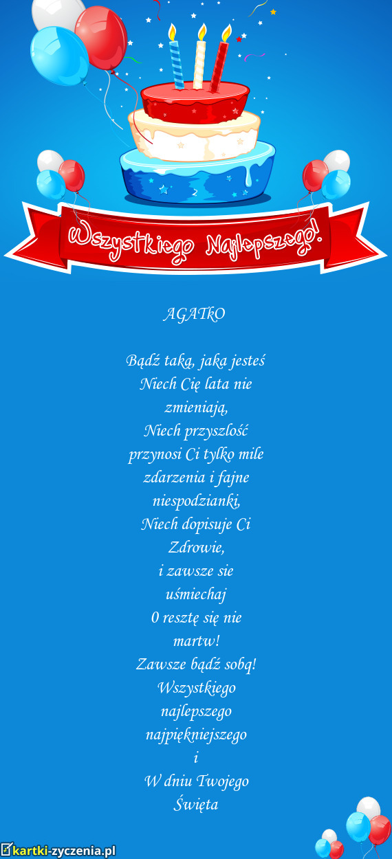 AGATkO W dniu urodzin życzę Ci aby każdy dzień był nie zapomnianą przygodą i powodem do zad - Kartka urodzinowa
