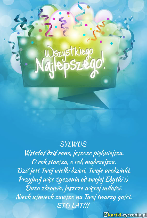Wszystkiego najlepszego z okazji urodzin! Życzę Ci ogromnego szczęścia, mocnego zdrowia, powodzenia, sukcesów w pracy oraz spełnienia pragnień! Niech twoje życie będzie wypełnione pozytywnymi emocjami.
