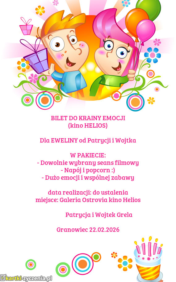 Dowolnie wybrany seans filmowy - Kartka urodzinowa