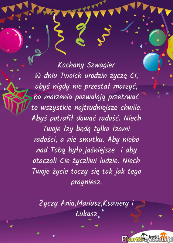Życzy Ania ,Mariusz,Ksawery i Łukasz