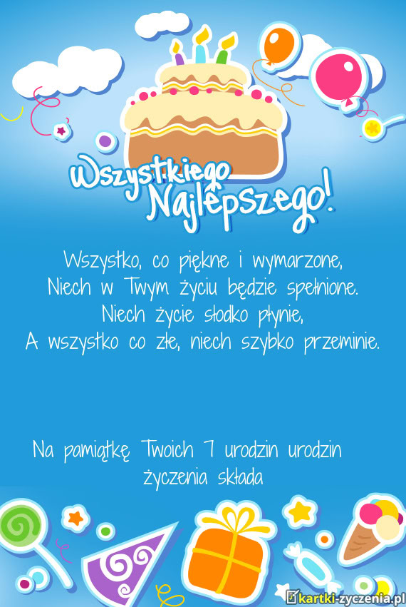 Na pamiątkę Twoich 7 urodzin urodzin