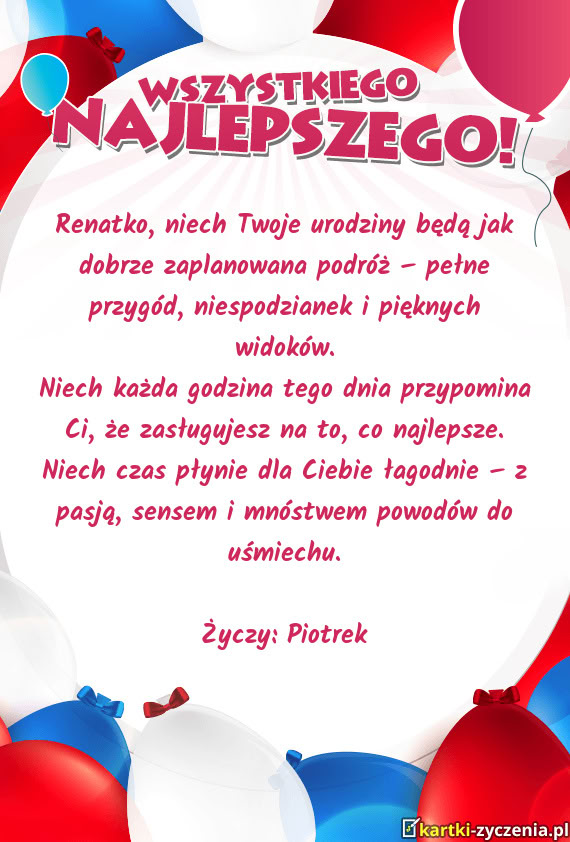 Renatko, niech Twoje urodziny będą jak dobrze zaplanowana podróż – pełne przygód, niespodzianek i pięknych widoków.