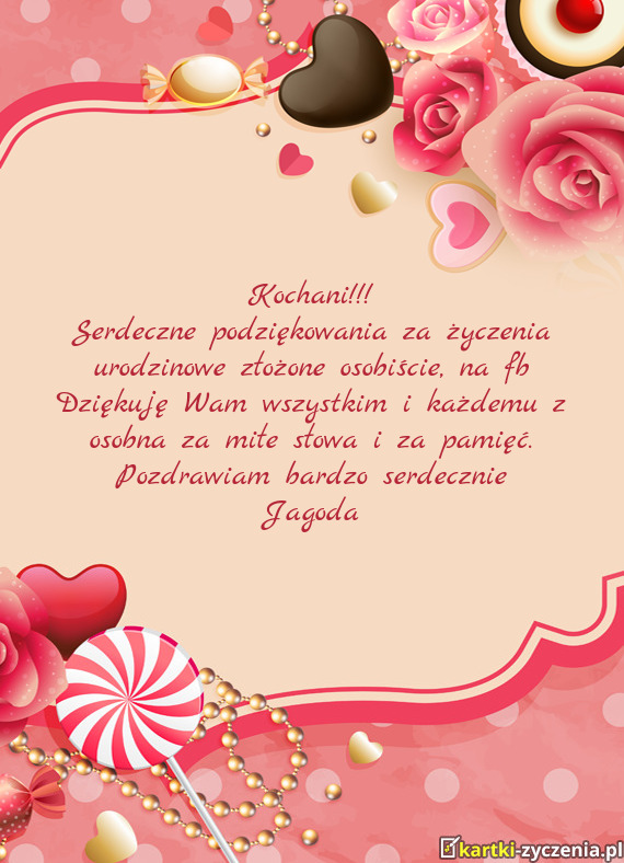 Niech każdy dzień przynosi Ci tyle radości, ile Ty dajesz innym uśmiechów! żebyś zawsze miała wokół siebie ludzi tak serdecznych, jak Ty sama. Niech Ci się wszystko układa po Twojej myśli, a kalorie magicznie znikały. Aby Twoje serce zawsze miło pełen bak miłości.