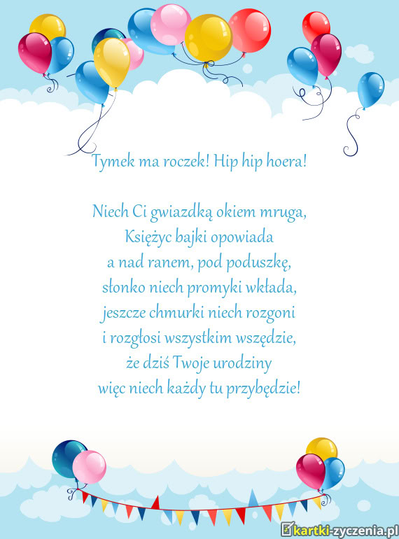 Tymek ma już roczek! Hip hip hoera - Kartka urodzinowa