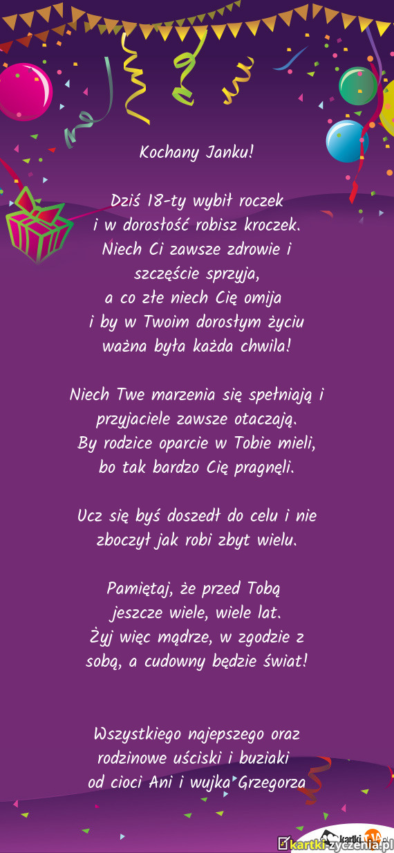 Z okazji urodzin życzę Ci, abyś nigdy nie przestał marzyć, bo marzenia pozwalają przetrwać te wszystkie najtrudniejsze chwile. Abyś potrafił dawać radość. Niech Twoje łzy będą tylko łzami radości, a nie smutku. Aby niebo nad Tobą było jaśniejsze i aby otaczali Cie życzliwi ludzie. Niech Twoje życie toczy się tak jak tego pragniesz.
