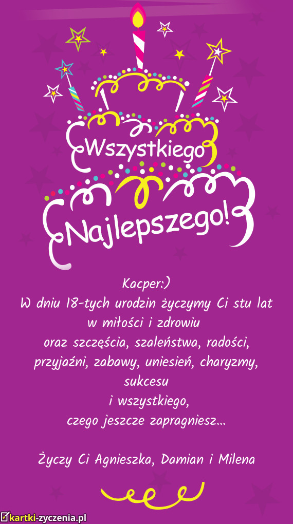 ūyczy Ci Agnieszka, Damian i Milena - Kartka urodzinowa