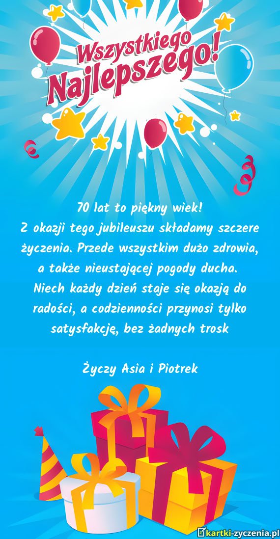 Z okazji urodzin składamy szczere życzenia. Przede wszystkim dużo zdrowia, a także nieustającej pogody ducha.