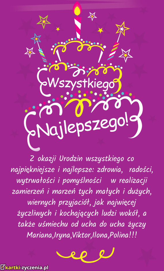 Z okazji urodzin wszystkiego najlepszego dla sąsiada wspaniałego.Duużo zdrowia i słodyczy Irmina i Piotr życzy.