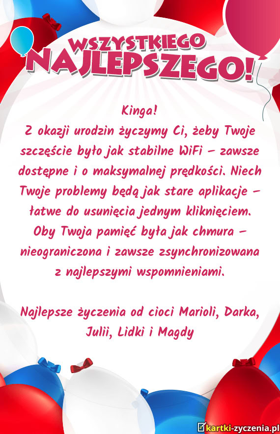 Życzą Ciotka Asia z wujkiem Michałem i Oliwką - Kartka urodzinowa