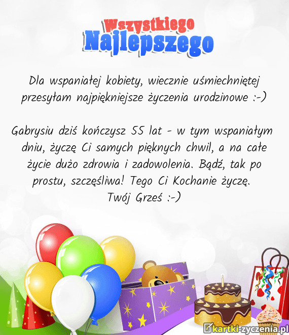 Gabrysiu dziś kończysz 55 lat - w tym wspaniałym dniu, życzę Ci samych pięknych chwil, a na c