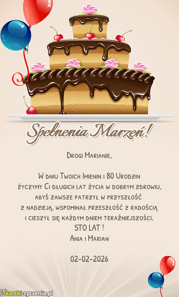 W dniu Twoich Imienin i 80 Urodzin