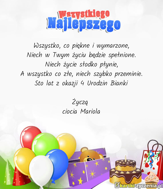 Sto lat z okazji 4 Urodzin Bianki