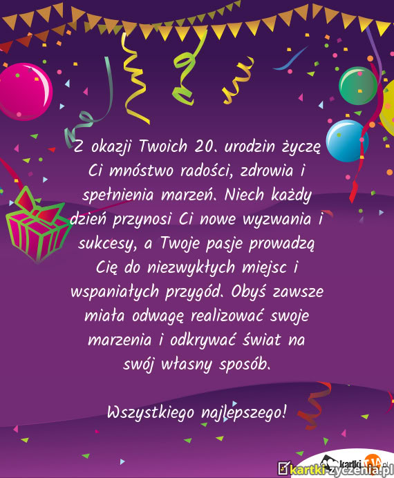 Kochana córeczko. Z okazji Twoich 20-tych urodzin życzymy Ci mnóstwo radości, zdrowia i spełnie
