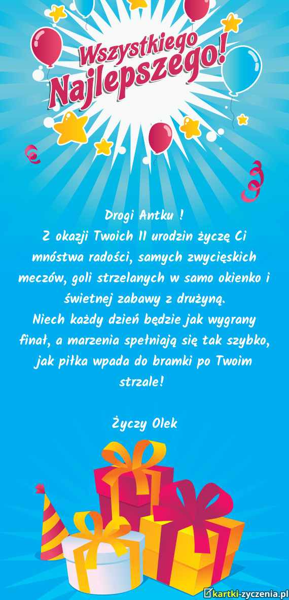 Z okazji Twoich 11 urodzin życzę Ci mnóstwa radości, samych zwycięskich meczów, goli strzelany