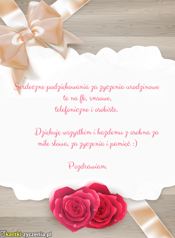 Serdeczne podziękowania za życzenia urodzinowe